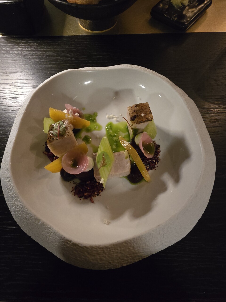 Amazing experience! Cozy atmosphere. Had the vegetarian course and it was nice! Great selection of wines.