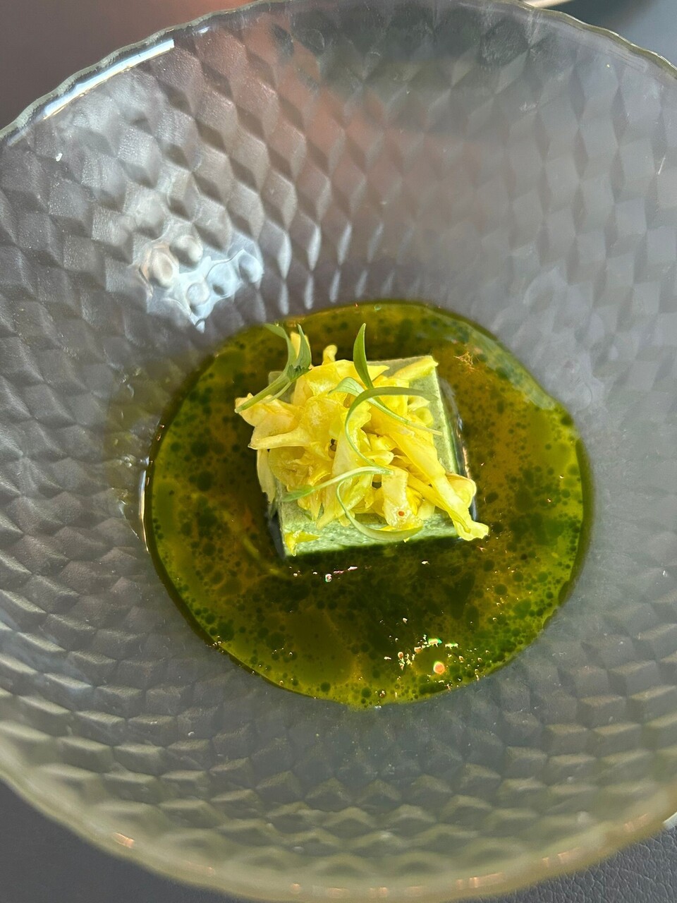 Mooie gerechten met heerlijke, intense en pure smaken. De hamachi met wasabi ijs is echt FANTASTISCH. Ook hebben ze een heerlijk alternatief menu samengesteld ivm zwangerschap.