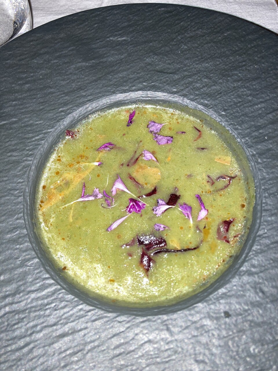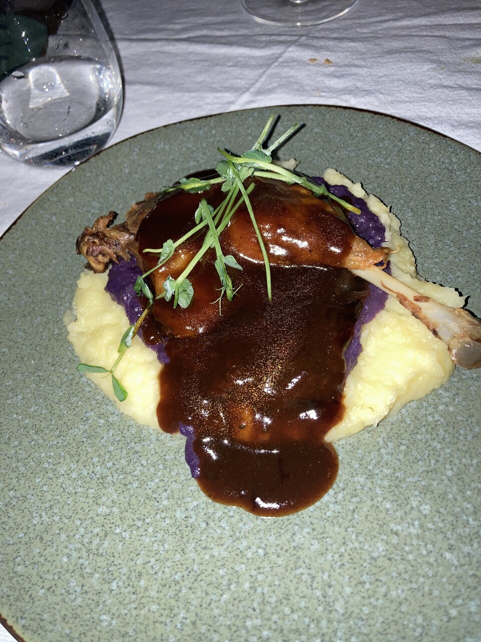Een heerlijk en verrassend 5-gangen menu met diverse landen-thema als achtergrond (soep uit Iran en tussengerecht uit Peru alsmede entrecote uit Franskrijk). Heerlijke hapjes en een hoofdgerecht van omvang. De bijpassende wijnen waren prima en zelfs 0.0 mogelijk, dus opende we met champagne.