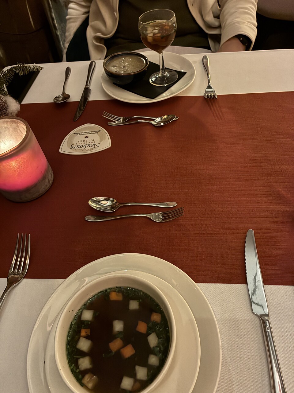 Prima gegeten in een gezellige locatie. Uiensoep was wat zout, maar dat was ook het enige. Bediening zou wat sneller kunnen, had kunnen vragen of wij nog iets te drinken wilden en droegen weinig bij aan de sfeer.