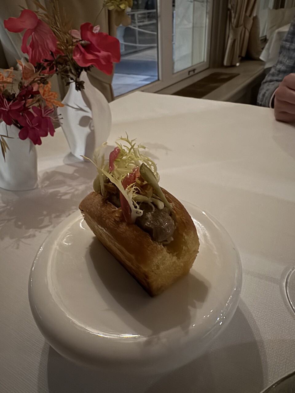 A very romantic evening out with food of the highest level. Very creative and tasty. Service was outstanding as expected. Bread, both amuses and the starter and main course were cooked to perfection. Can highly recommend this restaurant